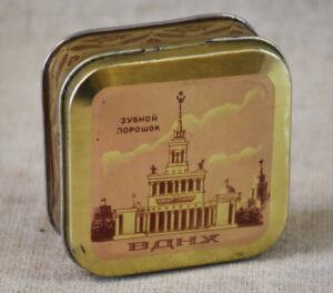 надписи: «Зубной порошок» и «ВДНХ»). На четырех сторонах баночки изображены