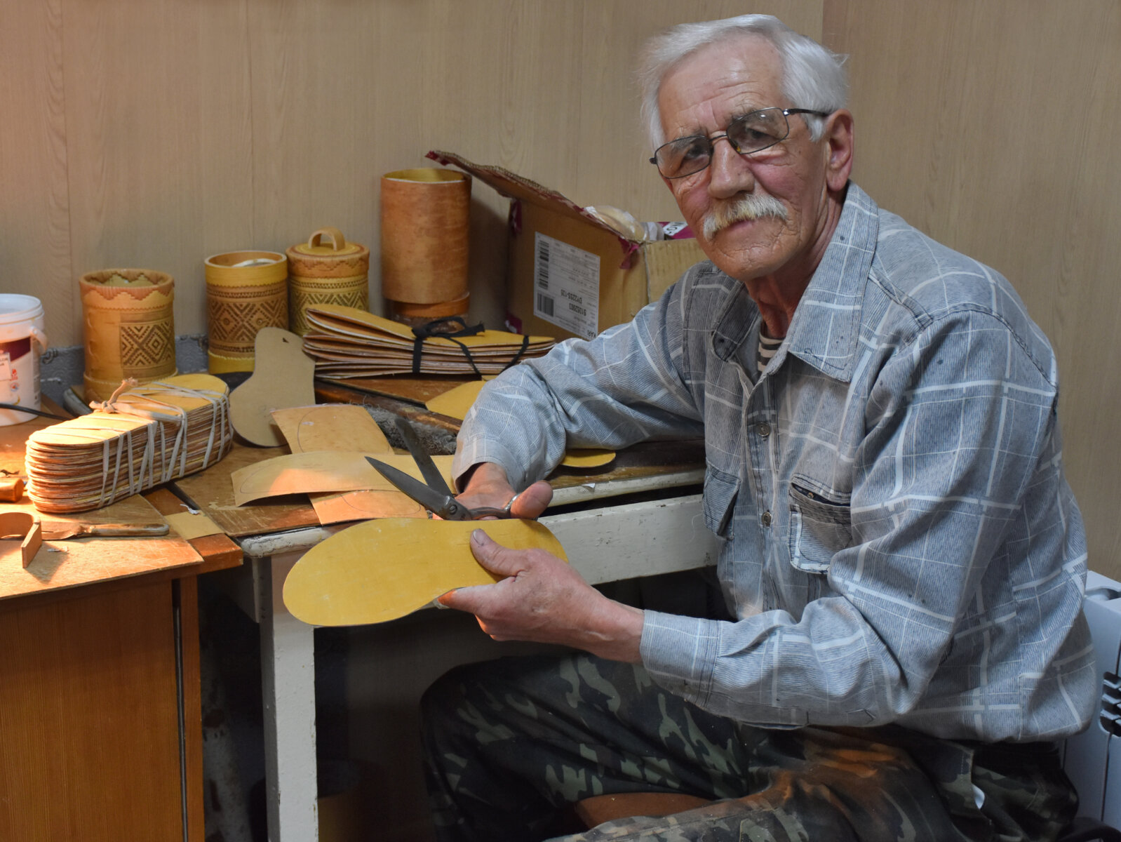 Народный мастер Иркутской области Владимир Антипенко уже более 30 лет занимается изготовлением берестяных туесов — старинным народным промыслом. Ассортимент его изделий велик: кроме туесов и коробов им создана настоящая берестяная книга по Истории Иркутской области, и даже берестяной самовар, в котором можно кипятить воду. Мастер говорит, что береста является хорошим антисептиком, может долго хранить тепло. В царской армии русские солдаты делали себе стельки из бересты – берегли свои ноги. Владимир Петрович и сам изготовил несколько десятков пар берестяных стелек для воинов, находящихся в зоне специальной военной операции. Совсем скоро он передаст их представителям «Народного фронта», а те, в свою очередь, нашим бойцам на передовой.